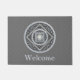 This mandala was designed for the zodiac sign, Cancer, depicting a moonstone in the centre surrounded by elements representing the sign, such as the symbol for the sign, the constellation, and the alchemical symbol for Water, as well as filigree vines and weaves wrapping it all into a solid image in shades of pearly white-blue, silver, and grey. Customise the text on this doormat with your own preferred greeting or remove it entirely to make a unique decoration for your entryway.