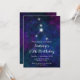 This cosmic and celestial birthday invitation features the Cancer zodiac constellation on a dark blue and purple watercolor galaxy background with scattered stars. The text combines handwritten script and modern serif fonts for a stylish and classic look. This is perfect for astrology themed parties.
