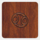 Cancer Zodiac Symbol on Mahogany Wood Style Square Sticker