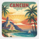 Cancun Beach Mexico Vintage Travel Square Sticker
