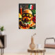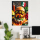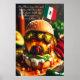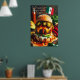 Satisfy your cravings with this Cancun Chipotle Crave burger. A juicy spiced beef patty, grilled to perfection, is layered with melted Oaxaca cheese, roasted jalapeños, a dollop of chipotle mayo, and fresh avocado. All nestled inside a corn-dusted bun. A miniature Mexican flag adds a festive touch, while a blurred background of chilli peppers and fresh cilantro completes this authentic Mexican culinary experience.