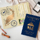 Have fun with your Wedding Save the Date or Wedding Invitation! Perfect for a destination wedding. Beach Hut and Chairs in a FAUX Gold Foil with Navy Blue background and inside. Inside moveable heart to place over wedding location. Palm Trees and Cancun Mexico map on the inside with fun Passport Stamps. For enquiries about custom design changes by the independent designer please email paula@labellarue.com BEFORE you customise or place an order.