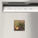 This magnet features a photograph of an aloe plant in a terracotta planter with smooth river stones and two low-level burning candles on an earth tone table and background. It features a Buddha quote, "Thousands of candles can be lit from a single candle, and the life of the candle will not be shortened. Happiness never decreases by being shared."