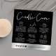 Trendy Candle Safety Guide with modern script font in faux silver and candle care icons. This black and silver candle warning instructions cards includes the most important care information for soy wax candles as well as space for your logo and business details on the back. The elegant script font adds a lux feel to this design. The perfect addition to your candle boutique packaging design.