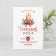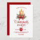 This Christmas-themed party invite features beautiful retro Christmas typography with a candlelight accent and a red bow and evergreen foliage.