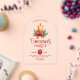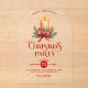 This Christmas-themed party invite features beautiful retro Christmas typography with a candlelight accent and a red bow and evergreen foliage.
