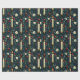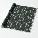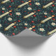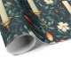 Festive wrapping paper with a pattern of greenery and burning candles on a dark background.