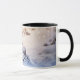 A beautiful scene of two candles with flames aglow. A mystical magical snow holiday coffee cup or mug.