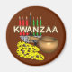 This 3d image is about kwanzaa, which is an African celebration of a harvest festival. The image of a kinara holding the 7 candles, a cup and corn on the cob which represents the seven days of the celebration of a harvest festival. These magnets are available in assorted styles, and sizes.