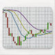 Colourful indicator Alligator on the candlestick chart. White background with check. Stock market concept.