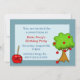 Cute child's birthday party invitations made with colourful graphics of a cartoon tree, with candy apples growing on it. The background is blue with a beveled looking edge around the text area, giving the card an embossed look. Customise the text to suit your child's party needs.