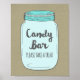 Candy bar sign poster for baby shower, bridal shower, or wedding with rustic country burlap pattern and cute mason jar illustration in light blue. Perfect for a rustic baby shower for a baby boy, wedding, or bridal shower.