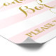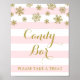 Candy bar sign poster for baby shower, bridal shower, or wedding in light pink and white stripes pattern with gold snowflakes.