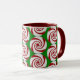 If you take the red and white candy slabs and, instead of twisting them, just roll them up and slice them accross, then instead of candy canes you get the classic peppermint drops. And what a pretty pattern they make! Use them to serve your Christmas Eve cocoa or Christmas morning coffee/tea.