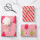 Candy Cane Christmas Pink Tree Doodle Wrapping Paper Sheet