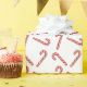 Custom gift wrapping paper rolls with candy cane inspired shapes in red, green and white.