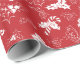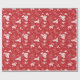 Red Christmas wrapping paper featuring a white pattern of holly leaves and berries on a red background with a bit of retro style.