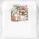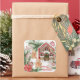 This design features watercolor illustrations of candy cane house, gingerbread boy and gingerbread girl, poinsettia, spruce branchlets and Christmas baubles