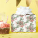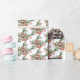 Christmas and New Year wrapping paper with candy cane house, poinsettias, red baubles, pine branches and gingerbread christmas tree