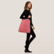 Ladies large Crossbody Bag in reflective pink squiggle shapes on a base colour of red.