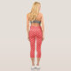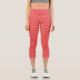 Ladies Capri Leggings in reflective pink squiggle shapes on a base colour of red.