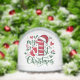 Celebrate a baby's first Christmas with this joyful design featuring a candy cane–striped number “1” topped with a Santa hat, surrounded by holly leaves, red hearts, stars, and tiny baby footprints. The festive layout captures the wonder of this milestone moment. On the reverse side, a cherished photo of the baby is paired with the sweet saying: "Tiny toes, twinkling lights, and one magical night—my very first Christmas delight!" Personalized with the child’s name and year, this keepsake radiates warmth, love, and holiday cheer.