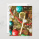 Christmas greetintg cards, postcards, and holiday stickers that match, all with a pretty close up of a holiday tree with ornaments, paper chain, and candy cane!