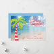 Warm holiday wishes from the beach. In a red script is says, "Merry Christmas". There's a bright blue sky an ocean and beautiful sand. The ocean with crystal blue water is crashing along the sand. There's a red and white candy cane striped palm tree with bright coloured balls hanging from the leaves. On the sand is watercolor blue crab, a brown seahorse, and two small tan seashells. Check out the many other beach scenes and products we have in our store.