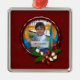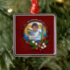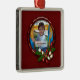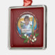 Customise this beautiful traditional ornament with your own photo. Shiny red scalloped circular frame is embellished with candy cane, red ribbon and Christmas greens. Background is rich red damask.