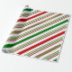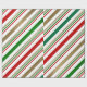 Candy Cane Red, Green, Gold and White Stripes Wrapping Paper