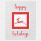 Festive holiday fleece blanket, with a candy cane reindeer in the centre, on a soft pale grey blanket with thin white pinstripes. Design as shown says Happy Holidays, but you can customise the text, add a name, or just leave blank. These fleece blankets are the softest. Available in three sizes.