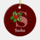 Candy Cane Stripe and Holly S Monogram Ceramic Ornament