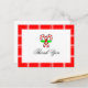 A cute Thank You postcard with candy canes against a red and white background.