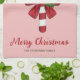 Destei's original illustration of a red and white striped Christmas candy cane treat decorated with a red bow and a Christmas holly / Common holly plant. The background colour is pink. There are also two personalizable text areas.