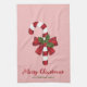Candy Cane With A Bow And Christmas Holly & Text Tea Towel
