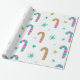 Add a playful touch to your holiday gift-giving with this modern white Christmas wrapping paper, featuring an adorable candy cane and star pattern. The candy canes are designed in cheerful shades of green and pink, bringing a unique twist to the classic holiday motif. Scattered around them, stars in various shades of green add a festive sparkle that completes the design.