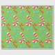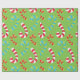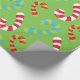 Wrapping paper with striped candy canes of red with white, green, and blue on a green background, perfect for holiday gift wrapping!