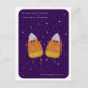 Candy Corn Duo "Counting Our Blessings" Fall Holiday Postcard - Send warm Thanksgiving wishes with this delightful postcard featuring two sweet candy corn characters lying under a starry purple night sky. The heartfelt message reads, "We were just lying here counting our blessings and thought of you," making it a perfect way to share gratitude and love this fall.