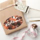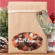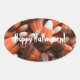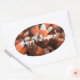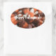 Halloween themed sticker featuring a close up photo of candy corn and Happy Halloween wishes.
