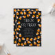 This cute Halloween invitation features a black background filled with candy corn. The words "Trick or Treat" are written in a fun and festive font. It's the perfect way to invite your friends' kids to a spooky-sweet Halloween party.