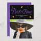 Cute Halloween card featuring "Trick or Treat" in a playful purple handwritten script surrounded by candy corn and dots in purple, off-white, yellow, and orange. Personalise the colourful Halloween card by adding your family name, the year, and a photo. Perfect for sending festive Halloween greetings or as a fun keepsake for friends and family.