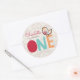 Candy Damask Chick Girl 1st Birthday Party Favour Classic Round Sticker