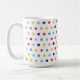 A cheerful and vibrant polka dot pattern which brings a pop of fun. It features a playful array of colourful circles in red, yellow, blue, pink, turquoise, and navy on a crisp white background.