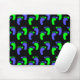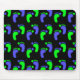 Alternating blue and green footprints against a black background make a stylish yet whimsical mousepad!
