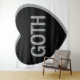 A grayscale candy heart that says, "GOTH."