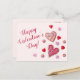 Custom message Valentine's Day postcard with a scattering of sweet treats. Candy hearts and heart-shaped cookies decorate light pink cards. Greeting on the front and place to add your own custom wording on reverse. Buy in bulk and save.