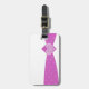 A classy tag for travelling featuring a candy pink ribbon with little heart accents.