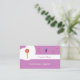 A pink business card for candy store or confectionery supplies with full contact information on the back. It comes with lollipop and candies illustration.