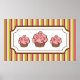 Candy colored stripes decorate this pink cupcake art print. Use this art print as decor in a coffee shop, bakery, kitchen, nursery, bedroom, etc....The design is from original art.