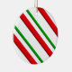 Diagonal candy stripes of candy cane red and green on a white background ceramic ornament